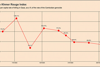 The daily per capita rate of killing in Gaza as a percentage of the Cambodian genocide